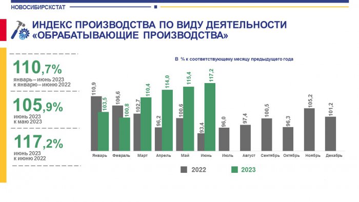 В первом полугодии 2023 года индекс промышленного производства в Новосибирской области составил 105,6% к соответствующему периоду 2022 года.