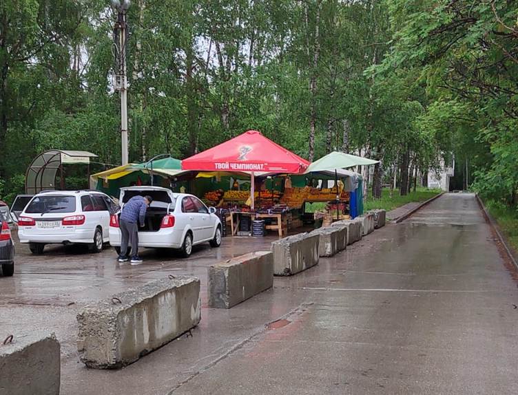 На улице Ильича (верхняя зона Академгородка) установили прилавки для уличной торговли от МУП «Сибирское гостеприимство»,