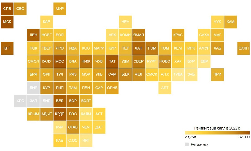 В рейтинге наша область остановилась в шаге от первой двадцатки, которую составители охарактеризовали как регионы с высоким уровнем экономического развития. На них в целом приходится более 60% суммарного ВРП субъектов РФ, здесь проживает 70,2 миллиона человек или 48% всего населения России.