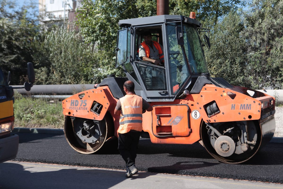На сегодня выполнены работы по фрезерованию и выравниванию покрытия на 100%. Установлено 1200 м дорожного бордюра. Строители приступили к устройству верхнего слоя асфальта.