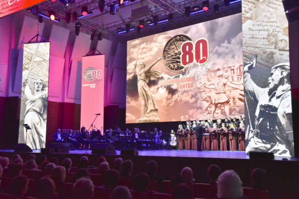 Вместе с ветеранами, курсантами военных учебных заведений, представителями общественности, членами военно-патриотических клубов и центров Андрей Травников и Андрей Шимкив также посетили торжественное мероприятие и концерт «Сталинград. Битва за будущее» в Государственном концертном зале имени Арнольда Каца.