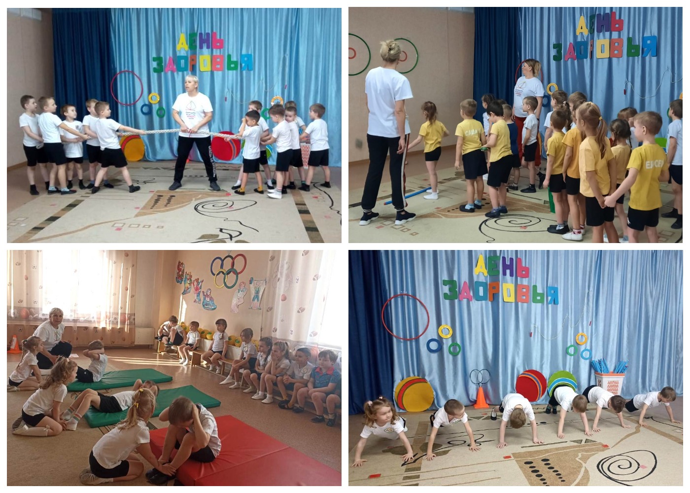 В группах раннего возраста «Пчелки» и «Чебурашка» малыши начали утро с веселой зарядки, а день посвятили подвижным играм и спортивным упражнениям. В младшей группе «Фантазеры» прошло развлечение, где ребята помогли Болейке сохранить здоровье и научили регулярно выполнять утреннюю гимнастику, соблюдать режим дня и питаться полезными продуктами. В группе «Светлячок» провели спортивное развлечение «Мы растем здоровыми» – дошколята отправились в путешествие, чтобы узнать, что нужно делать, чтобы укрепить здоровье: делали зарядку, отгадывали загадки про полезные продукты питания, играли в игры «Разбери фрукты и овощи» и «Поймай микроба», а также прошли полосу препятствий. В группу «Смешарики» после долгой зимней спячки пришел Мишка с испачканной мордочкой. Дети рассказали ему, что нужно соблюдать правила гигиены; подарили мыло, зубную пасту, щетку и полотенце; объяснили, что для сохранения здоровья нужно еще делать зарядку и заниматься спортом; в физкультурном зале все вместе прошли по тропе здоровья, поиграли в игру «Собери витамины».