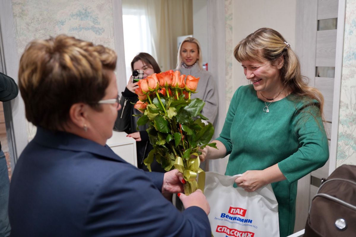 Депутат Заксобрания Новосибирской области Елена Спасских поздравила учителя информатики, дефектолога коррекционной школы № 107 Новосибирска Наталью Чупину , чей муж сейчас находится в зоне спецоперации.