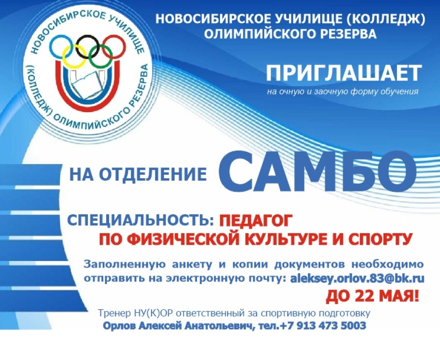 Новосибирское училище (колледж) олимпийского резерва приглашает абитуриентов на очную и заочную формы обучения по специальности "ПЕДАГОГ ПО ФИЗИЧЕСКОЙ КУЛЬТУРЕ" - отделение САМБО