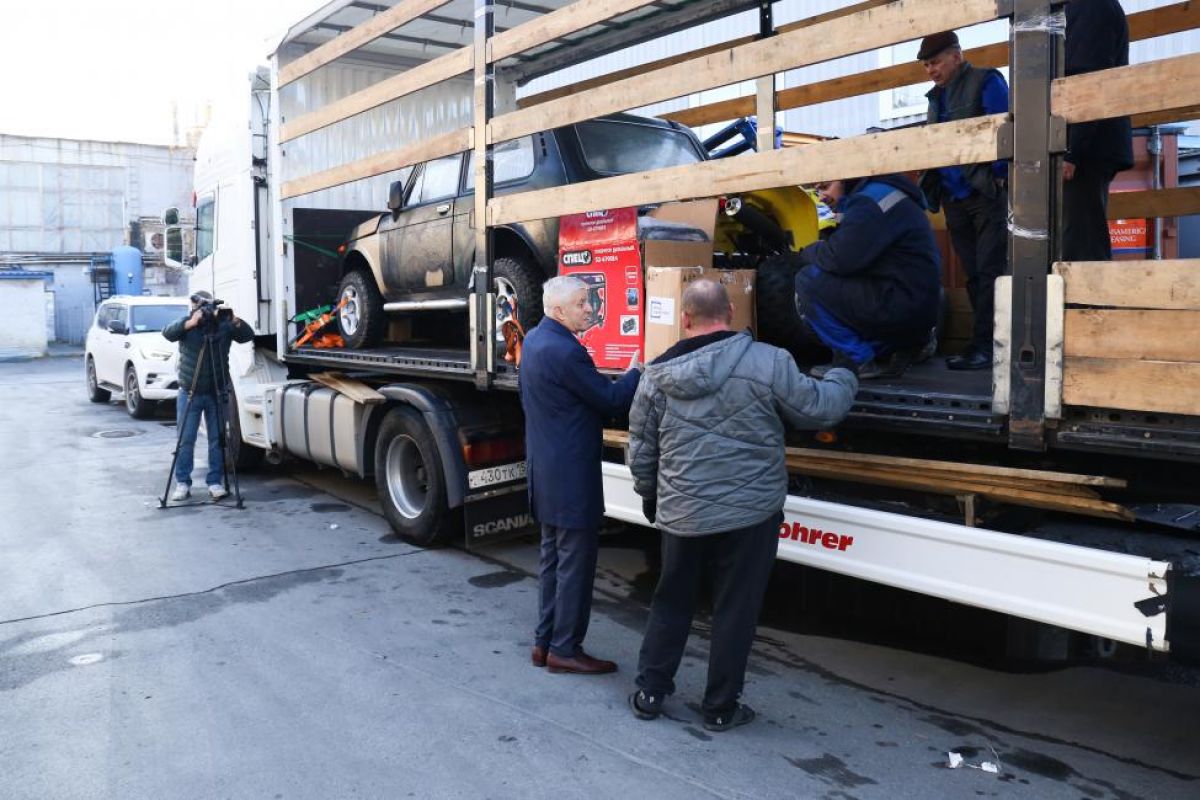 Из Новосибирска за ленточку отправилась фура с автомобилями «Нива» и «Газель», квадроцикл, печи-буржуйки, генераторы, маскировочные сети,