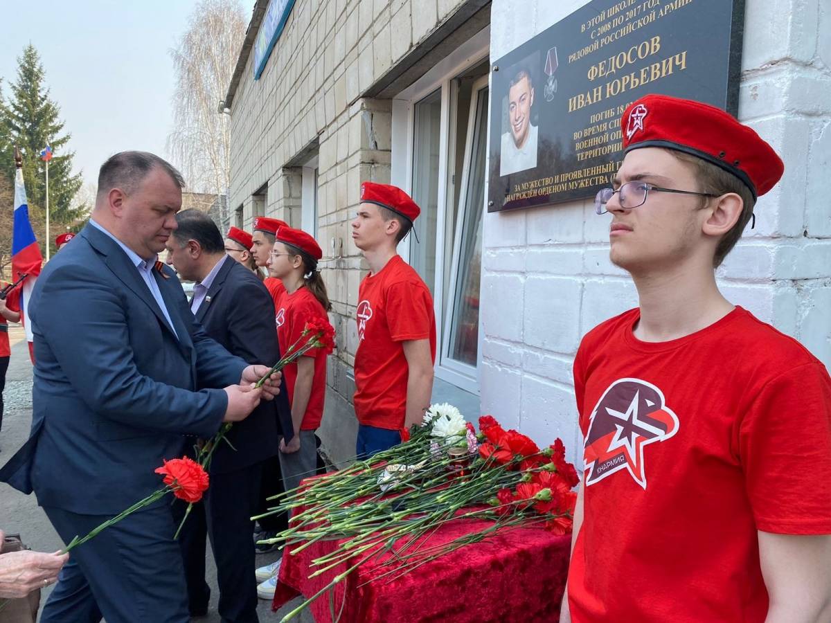 В Мошковском районе при поддержке «Единой России» открыли мемориальную доску Ивану Федосову
