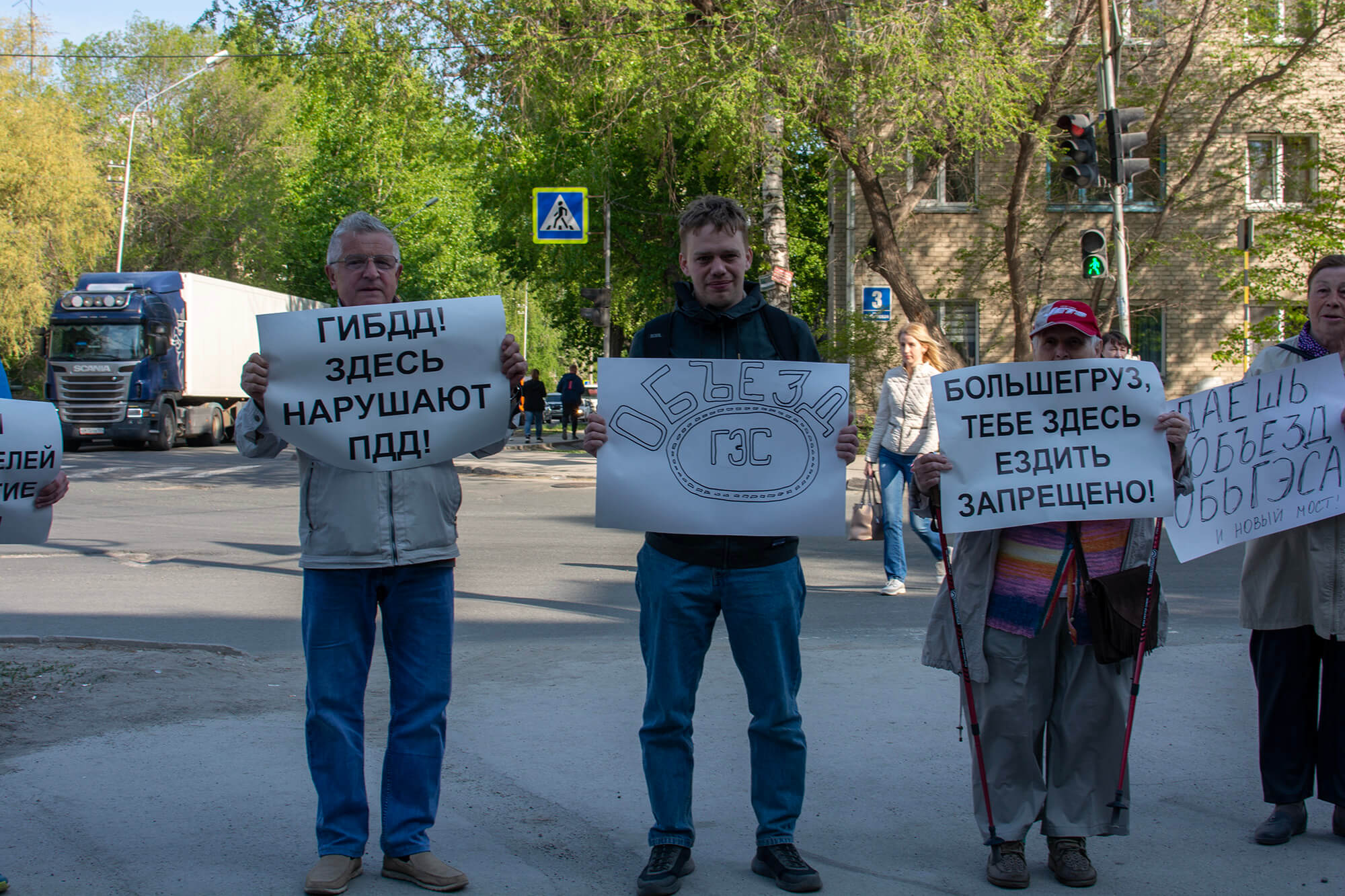Жители ОбьГЭСа вышли на пикет против движения фур по микрорайону