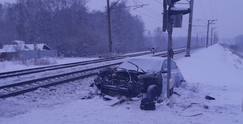 Рано утром 1 января под Новосибирском на железнодорожном переезде столкнулись легковой автомобиль и поезд.