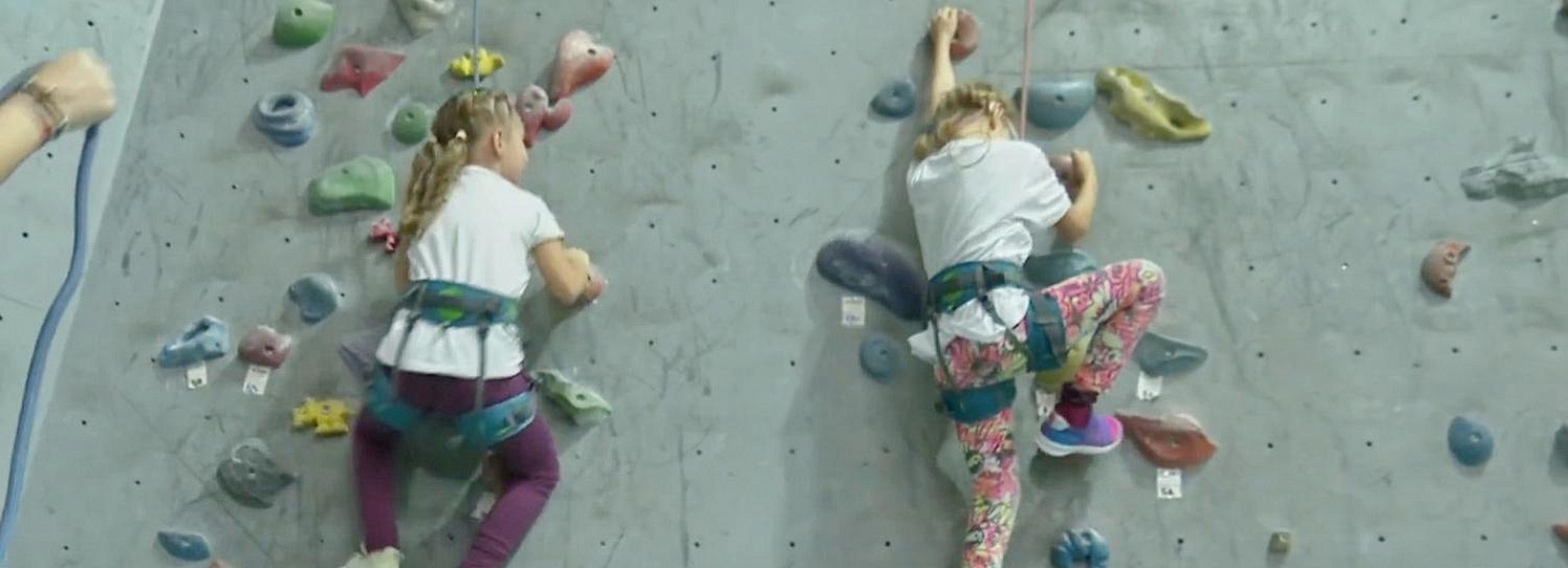 Неслышащие дети покоряют скалодром. Занятия проводит тренер по адаптивному скалолазанию.