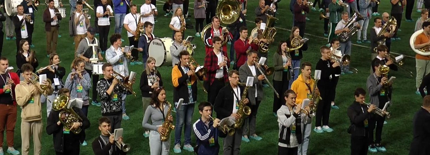 Грандиозную репетицию ко Дню города устроили духовые оркестры на стадионе