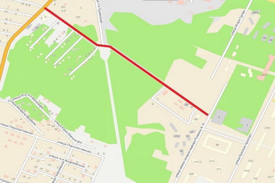 Она находится на участке от улицы имени генерал-майора Рожкина А. Н. до улицы Кедровая.