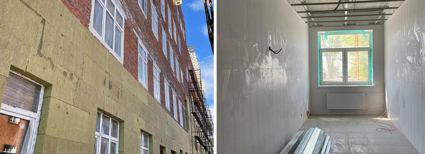 Несмотря на сложности, на площадке соблюдают график, отметил первый заместитель главы областного минстроя Дмитрий Тимонов. Сейчас обустраивают фасады зданий, завершают кровельные работы, проводят внутреннюю отделку помещений. Уже вставлены окна, готова котельная.