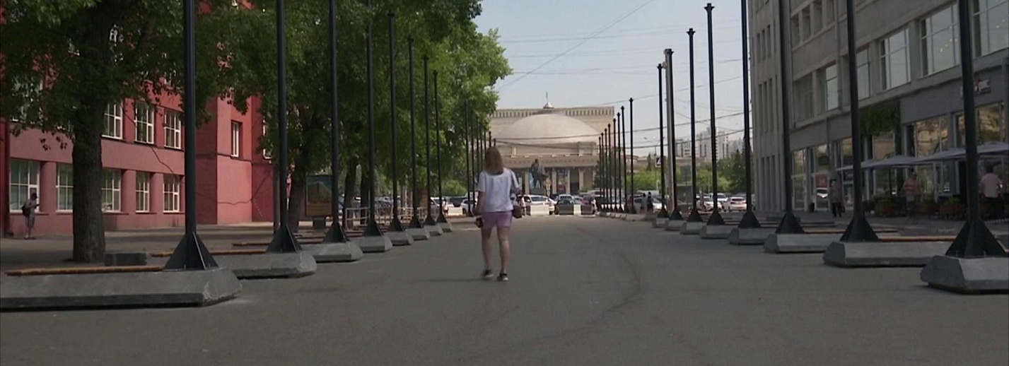 Улица Ленина в Новосибирске снова стала пешеходной — участок от здания Центробанка до пересечения с Советской оградили от автомобилей бетонными блоками до 10 июля.