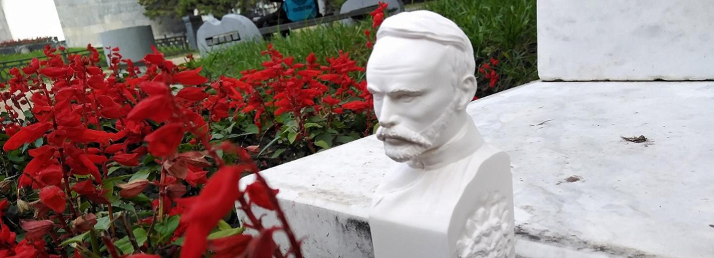 Крохотный бюст генерал-лейтенанту белой армии барону фон Унгерну, расстрелянному в Ново-Николаевске 102 года назад, установили на аллее в сквере Героев Революции у подножья бюста Петра Щетинкина.