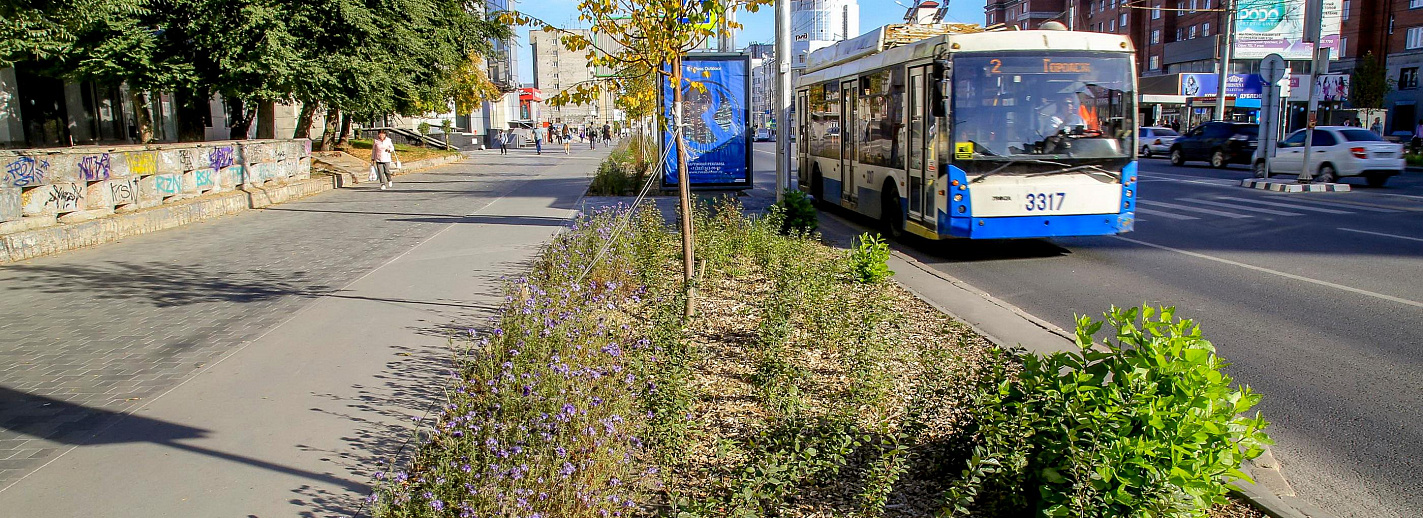 «Мы пробуем возвращать газоны. Мы начинаем понимать, что представляют улицы сейчас, начинается процесс проектирования: мы анализируем, какие и где коммуникации на улицах, где можно высаживать деревья, где кустарники, где только травянистые растения. Если мы делаем акцент на видовых точках — это место для цветников, например, как это уже сделано на крупных транспортных развязках. Но начнём мы, конечно же, с самой такой отработанной технологии, которая практически в ста случаях даёт положительный результат, — это использование рулонных газонов», — рассказывает Светлана Гижицкая.