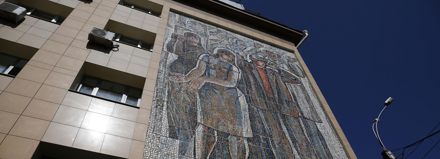 Эксперты подтвердили историко-культурную ценность советской мозаики «Труд, наука, культура, искусство», которая украшает фасад здания №65 на Красном проспекте.