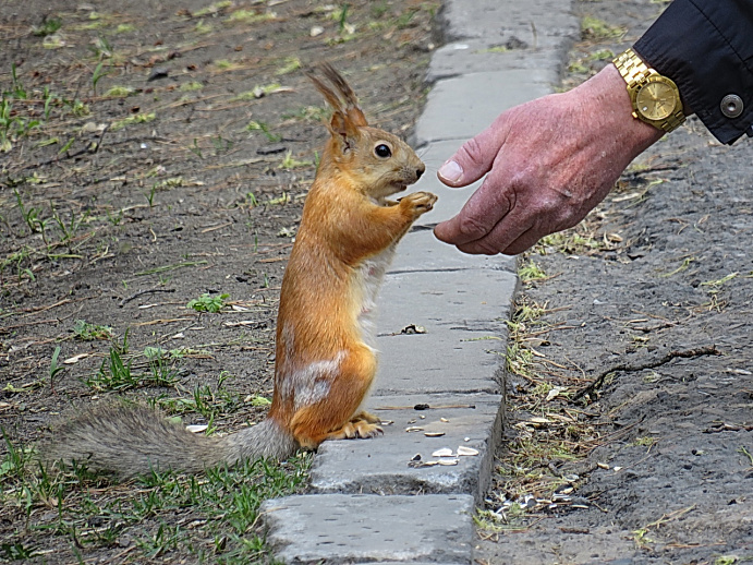 Новосибирцы могут покормить животных готовыми наборами. Устройство может насыпать горсть семечек за 20 рублей, или орехов — за 50 рублей.