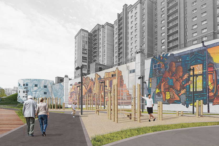 По проекту тут планируют сделать музей под открытым небом, а стену одного из соседних домов украсить муралом.