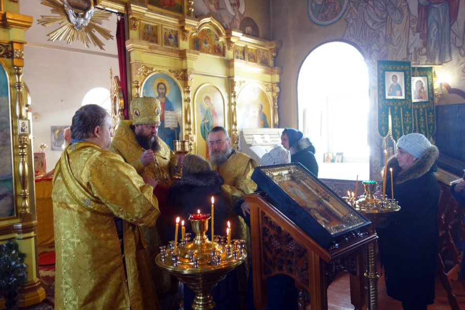 12 февраля/воскресение. В Неделю о блудном сыне, день празднования Собора вселенских учителей и святителей Василия великого, Григория Богослова и Иоанна Златоустого, Его Преосвященство епископ Филипп возглавил Божественную литургию в храме во имя свв. апостолов Петра и Павла с. Чингиссы, ему сослужил настоятель храма иерей Сергий Гранкин.