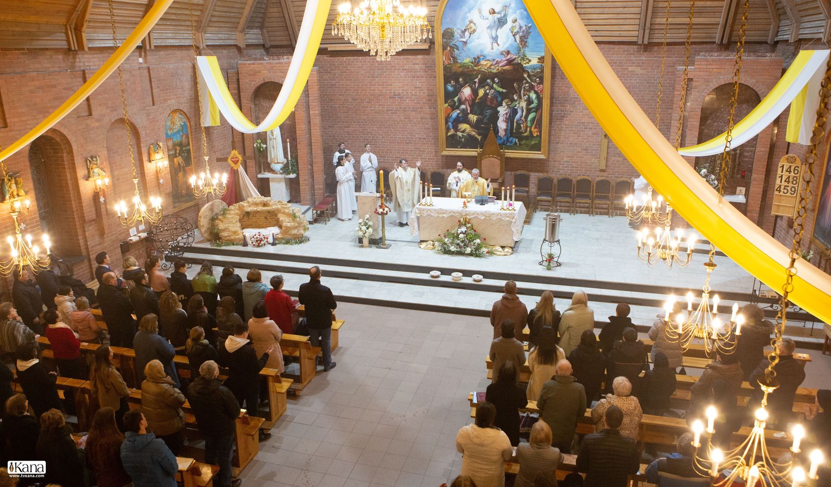 Светильничное богослужение с благословением огня и пасхальной свечи, пропетый настоятелем собора отцом Григорием Федосеевым гимн Провозглашения Пасхи ( Exsultet ), торжественное троекратное ‘Аллилуйя’ перед чтением Евангелия – всё это свидетельство вступления Церкви в новый литургический период, период перехода от смерти в жизнь, от тьмы к свету, от ужаса Креста к радости Воскресения.