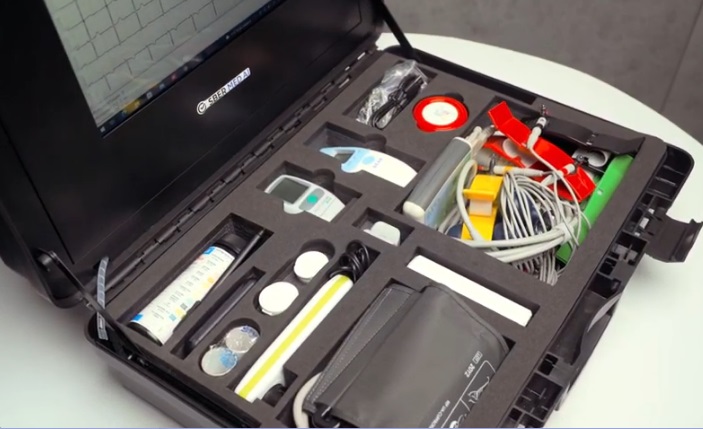 «Цифровой ФАП» — это диагностическое оборудование, собранное в компактный кейс для безопасной транспортировки и хранения, с подключением к интернету и ИИ-сервисам. Комплекс включает электрокардиограф, тонометр, анализатор крови и мочи, термометр, пульсоксиметр. С помощью аппаратно-программного комплекса можно получить результаты лабораторных и инструментальных исследований в режиме реального времени, провести обследование маломобильных пациентов на дому, плановые и экстренные телеконсультации с профильными специалистами областных больниц региона.