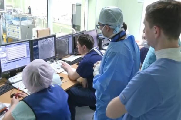 В клинике Мешалкина молодым хирургам под руководством консилиума опытных врачей удалось провести сложную операцию по стентированию артерии.