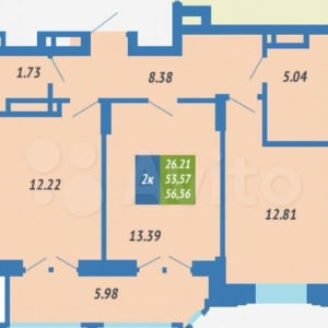 - Общая площадь: 56.6 м²