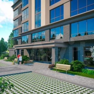 Современная входная группа без ступеней, с панорамным остеклением, широкие коридоры, просторный холл с зоной ожидания, колясочная и место для хранения велосипедов. Предусмотрены консьерж-сервис и отдельный вход для погрузочных работ.